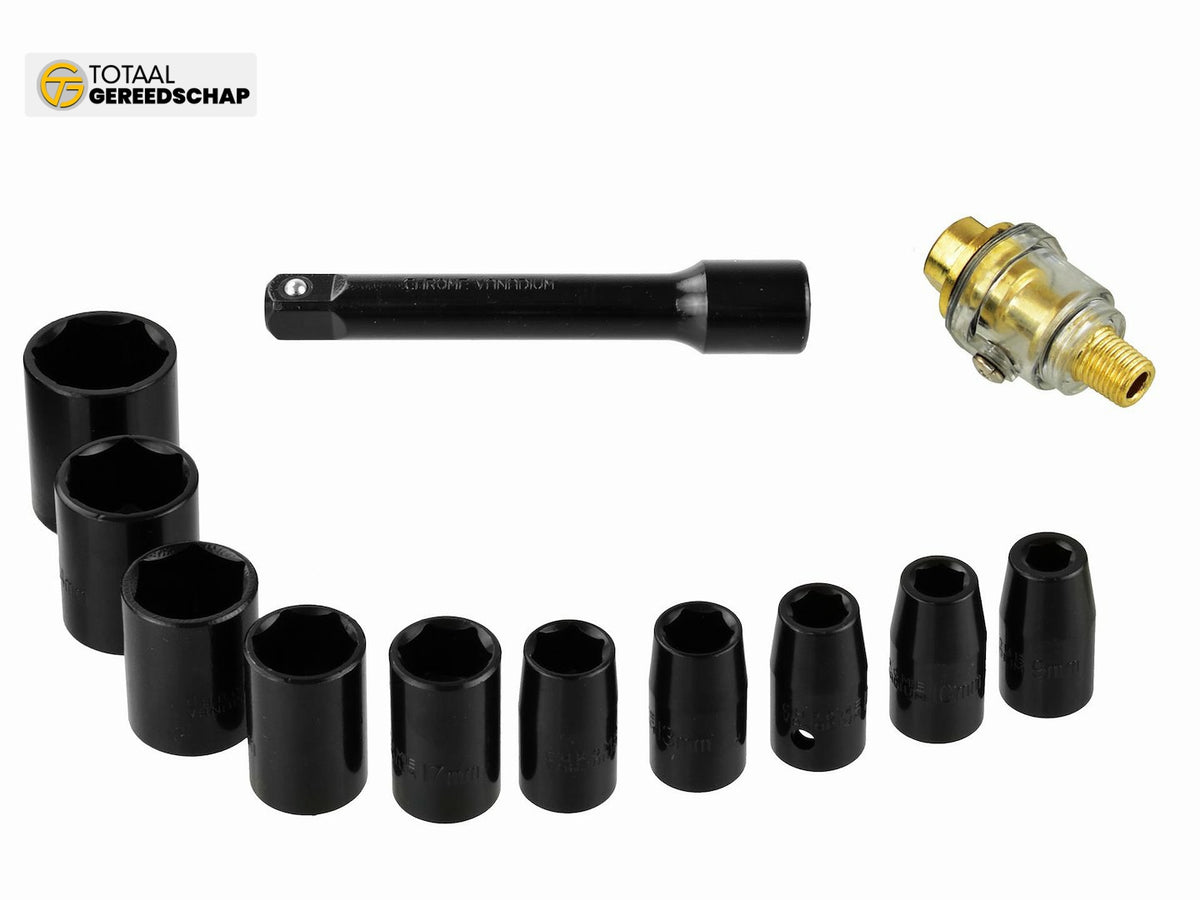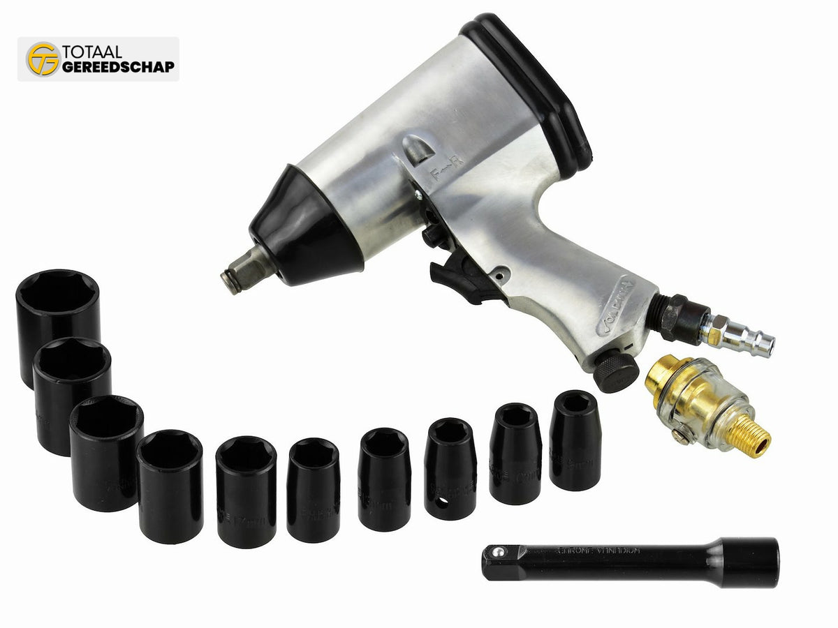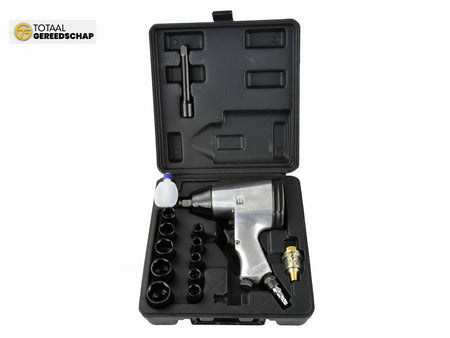 Air Impact Wrench 1/2" with Sockets Kit. Ideal for tightening car wheel bolts, for assembly work and repairs.