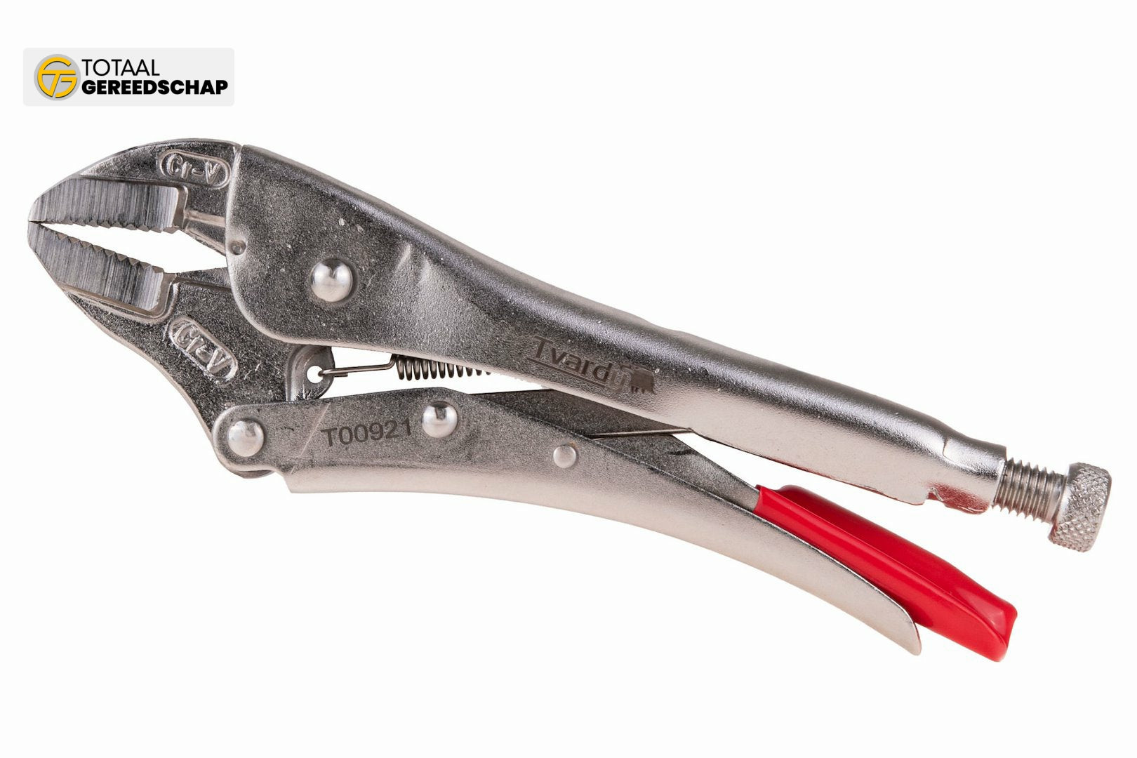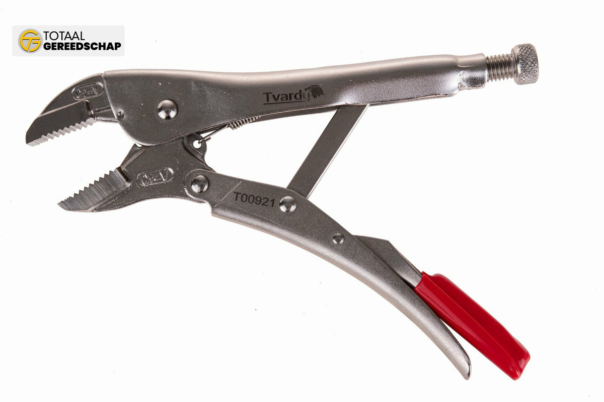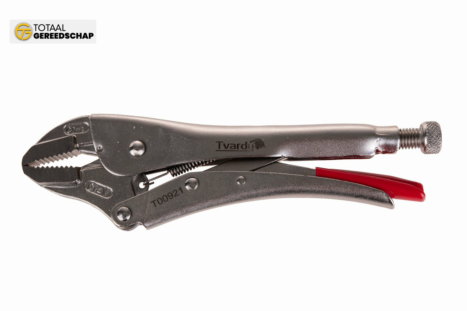 The universal locking pliers by Tvardy, 250 mm in length, are an indispensable tool in any workshop. Equipped with straight jaws with a range of 0-50 mm, they ensure a firm grip and precise clamping.