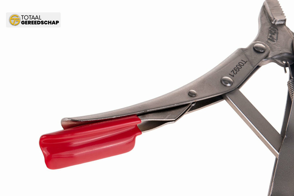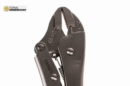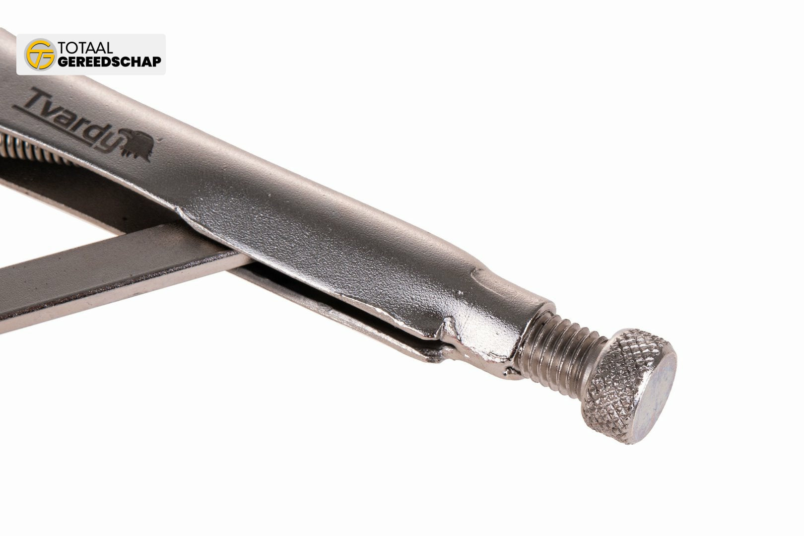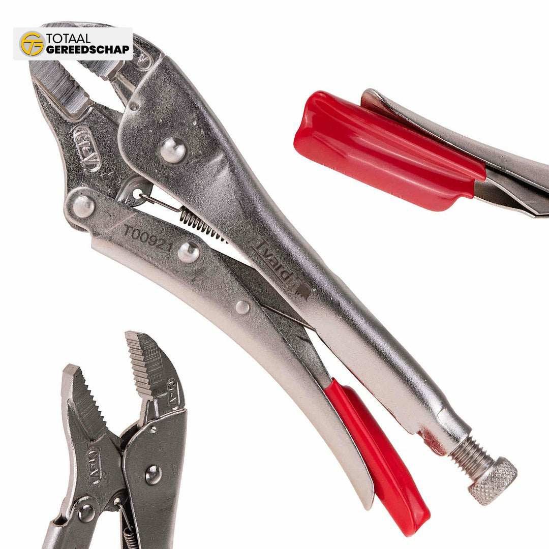The universal locking pliers by Tvardy, 250 mm in length, are an indispensable tool in any workshop. Equipped with straight jaws with a range of 0-50 mm, they ensure a firm grip and precise clamping.