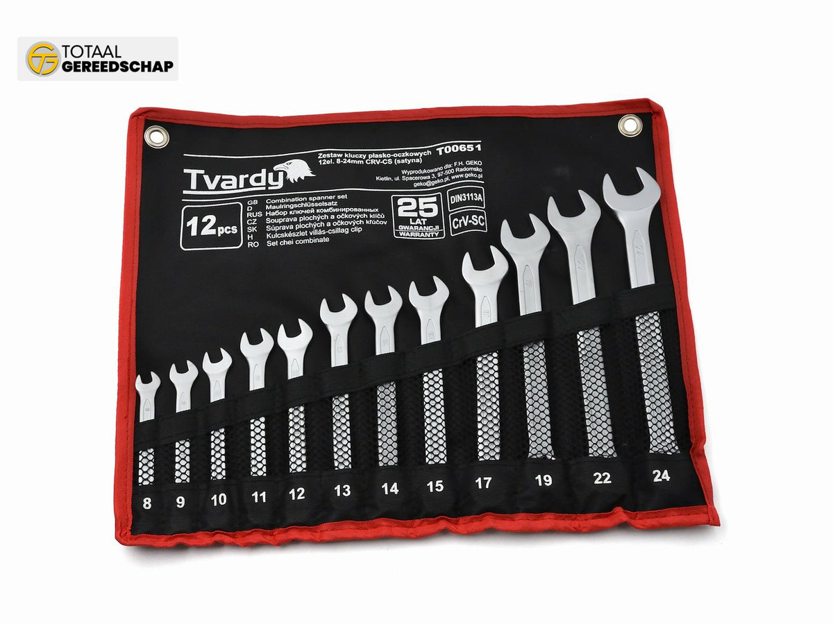 12pcs Combination spanner set 8-24mm, satin, CRV, Cold stamped
