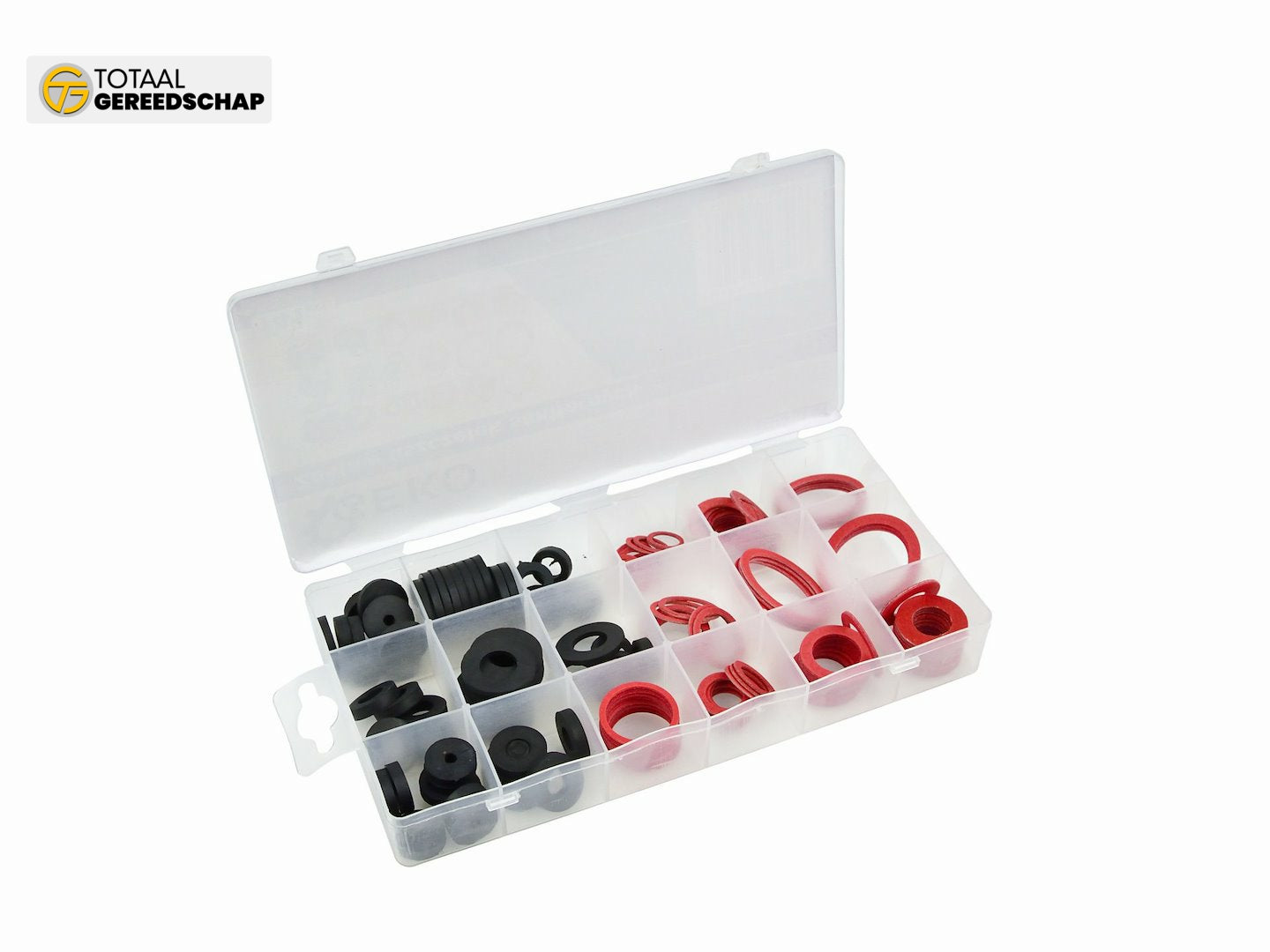 Sanitary gasket set, complete with rubber gaskets, fiber gaskets, and klingerite. The set includes 141 pieces of gaskets in 18 different sizes.
