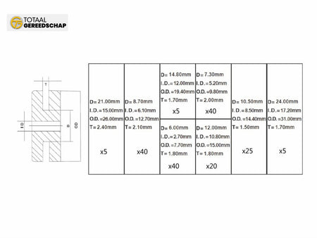 - 5 pcs: Hole Dia.: 15.0 mm; O.D: 26.0 mm, Fits Hole size: 21.0 mm