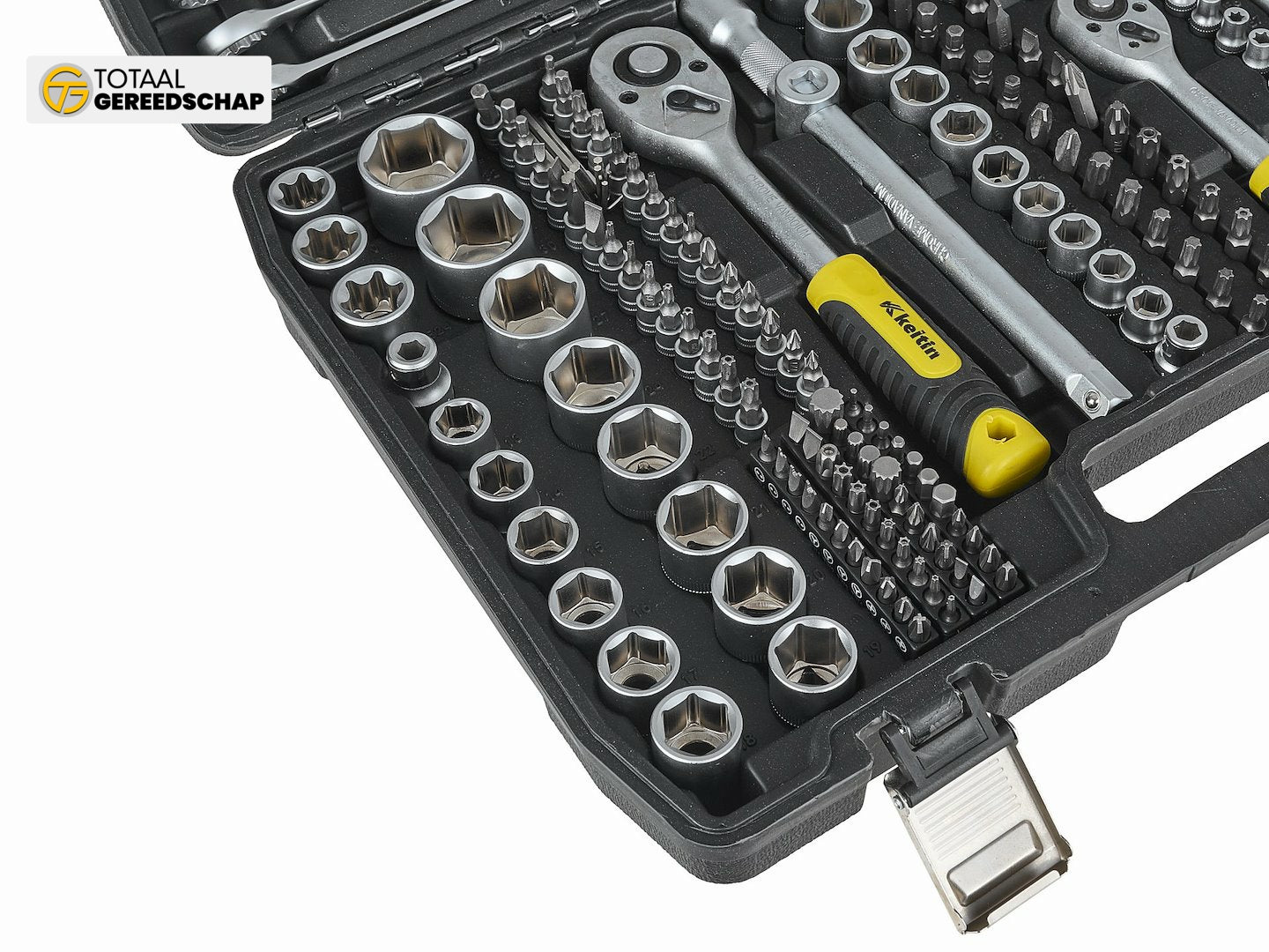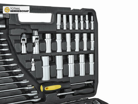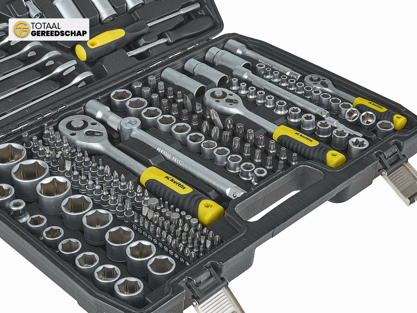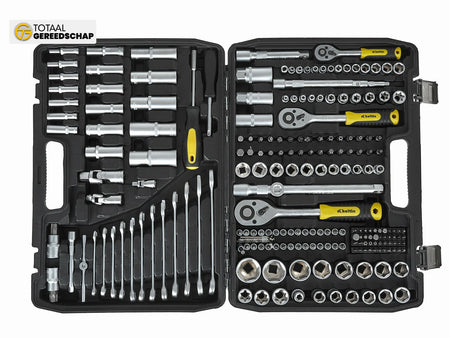 A comprehensive 216-piece set of sockets, combination wrenches, and accessories that meets the needs of both home DIYers and professional mechanics. Made from high-quality chrome vanadium (CrV) tool steel, it ensures durability and resistance to mechanical damage.