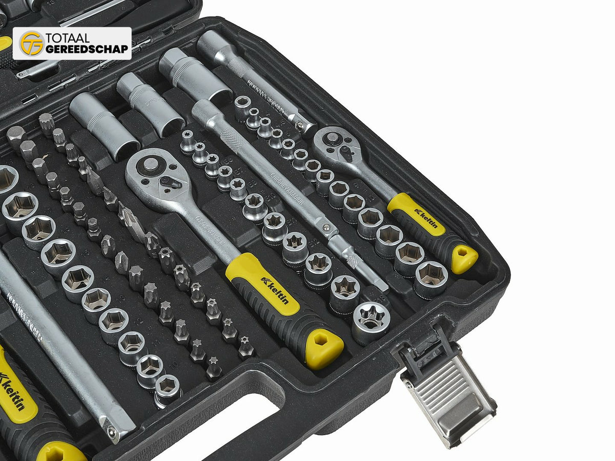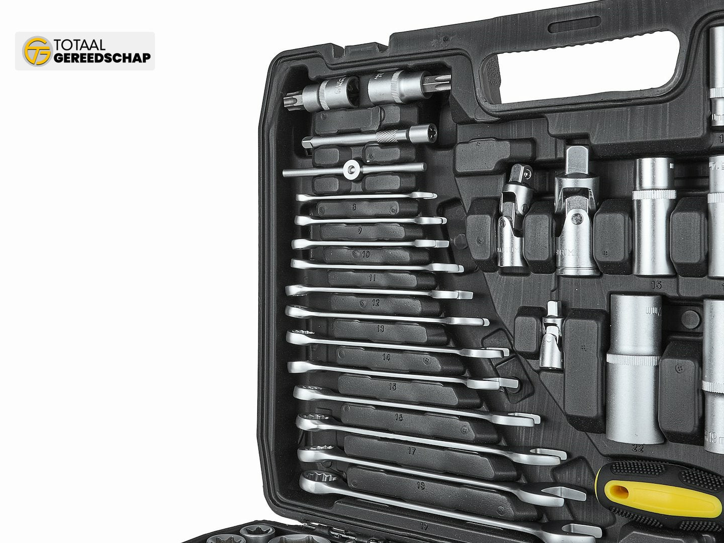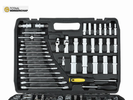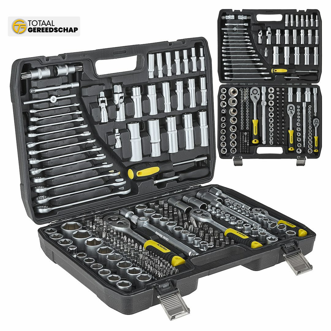 A comprehensive 216-piece set of sockets, combination wrenches, and accessories that meets the needs of both home DIYers and professional mechanics. Made from high-quality chrome vanadium (CrV) tool steel, it ensures durability and resistance to mechanical damage.