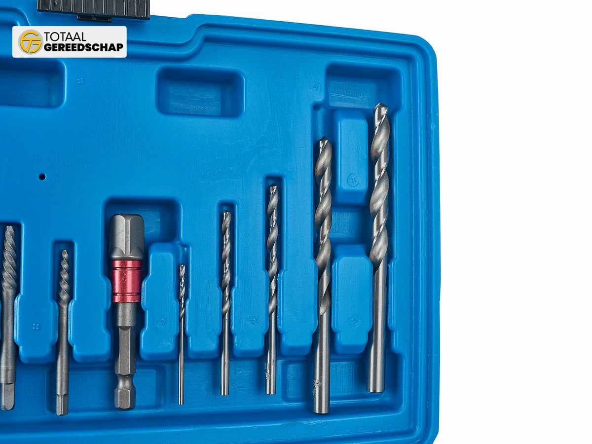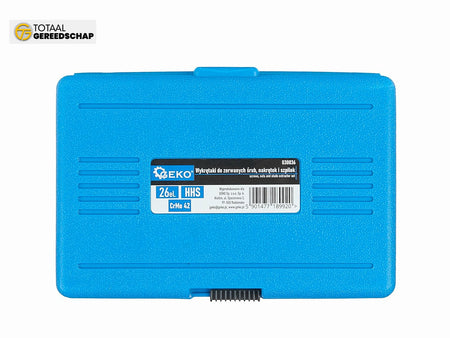 Number of components in the set: 26 (sockets, drill bits, extractors, adapter, nut splitters)