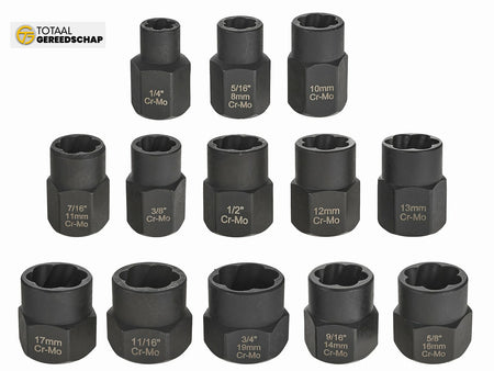 Sockets ranging from 1/4" to 3/4" (19 mm), compatible with 3/8" drivers