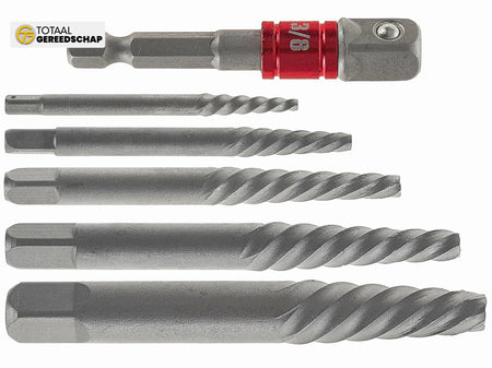 Extractors in sizes from 3 mm to 10 mm for removing damaged screws