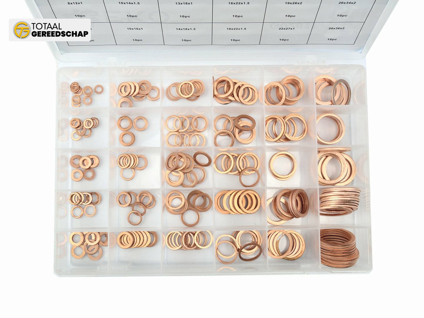 300 pcs Flat washers set made of copper. Copper washers are corrosion resistant in wet environments, nonmagnetic, and electrically conductive.