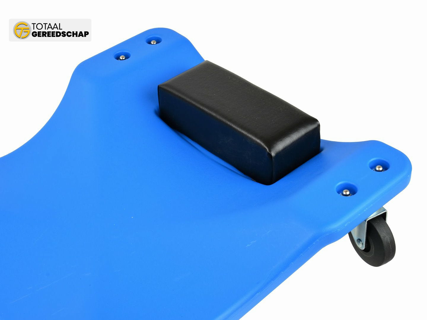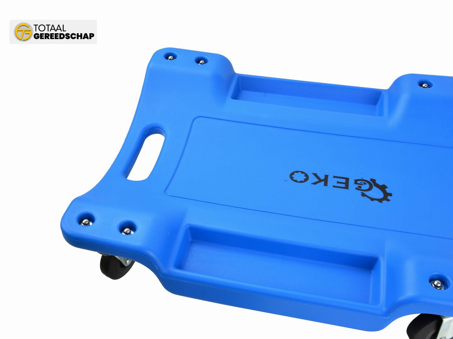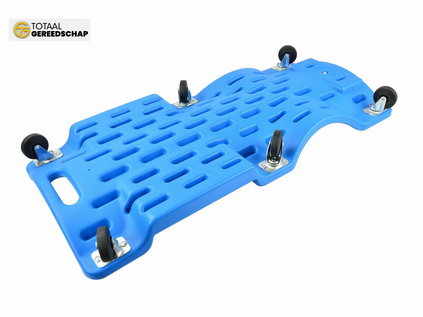 One piece, moulded polymer creeper with two integral tool trays and padded headrest. Used to allow easy access to the underside of vehicles without the aid of ramps
