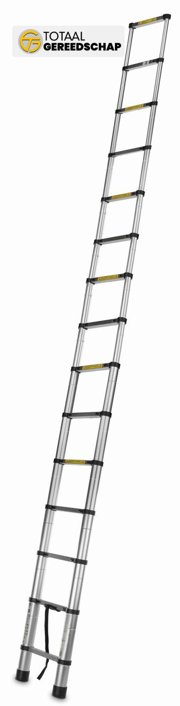 The telescopic ladder consists of sections that can be extended or retracted, enabling the adjustment of the ladder's length. This makes the ladder versatile and adaptable to various tasks, such as work at different heights or in hard-to-reach places. The ladder is equipped with locking mechanisms that hold the ladder sections in place, ensuring stability and safety during use, preventing accidental section slippage.