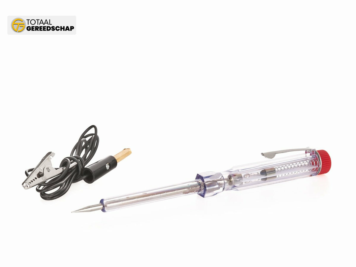 We present a professional voltage tester designed specifically to check the presence of voltage in a car's electrical system. This indispensable tool is ideal for automotive enthusiasts and mechanics who want to quickly and safely determine whether there is electric voltage at a given point in the circuit. The tester features a built-in LED diode that signals the presence of voltage in the circuit.