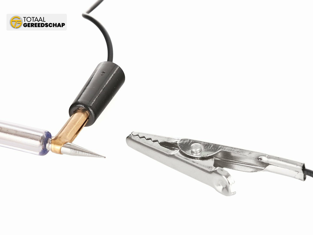 The voltage tester allows for detecting the presence of voltage in the range of 6 to 24V. Its additional 90cm cable with a "crocodile" type clamp ensures easy and secure connection to the circuit elements, minimizing the risk of errors during testing.