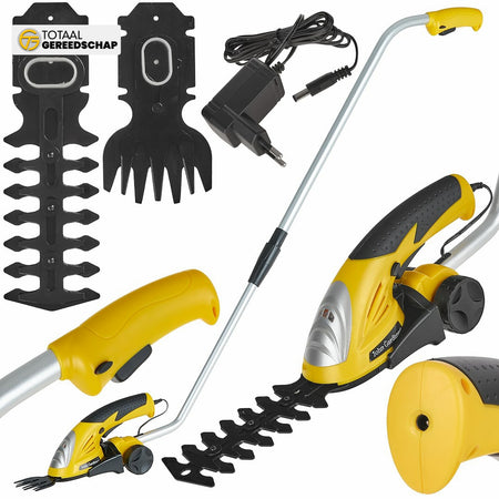 Cordless grass/shrub shears are irreplaceable device during garden maintenance. áFinishing the grass edges has never been easier. Because of usage of lithium-ionábatteryáwithá1300mAh capacity the shears become very handy and the cable does not bother the user. The ergonimic handle is covered by a anti-slip material and because of low weight makes the performance comfortable and safe.á