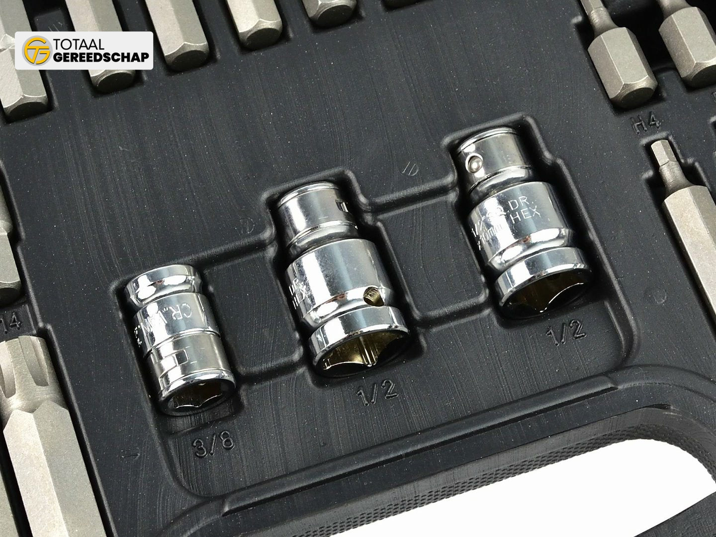 - 1/2 "socket adapter (2 pcs.) and 3/8" socket for 10 mm bits