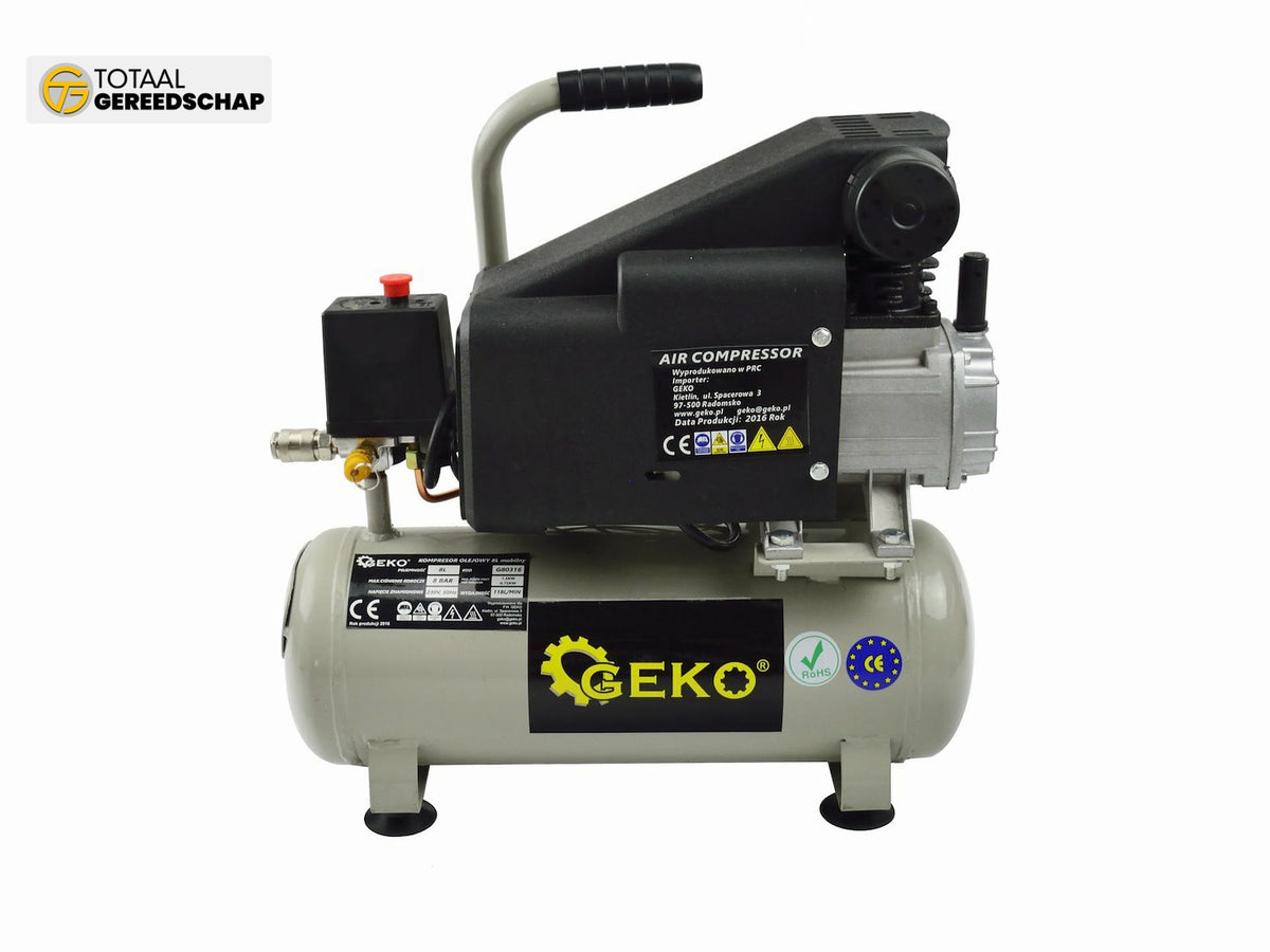 GEKO oil lubricated 8 litre portable compressor.