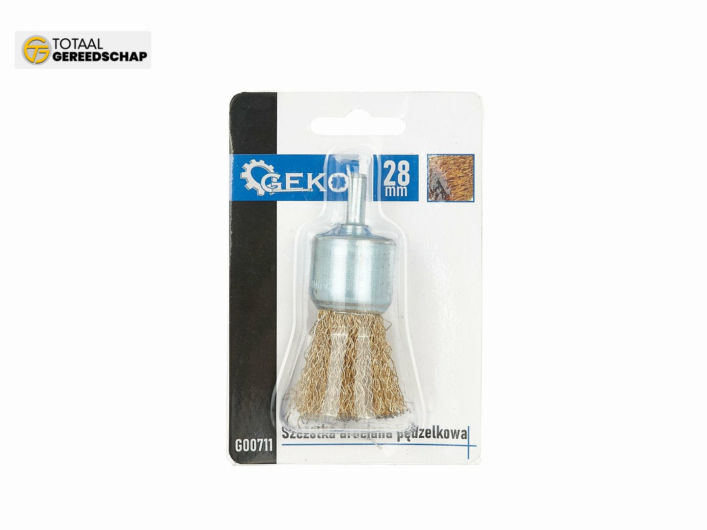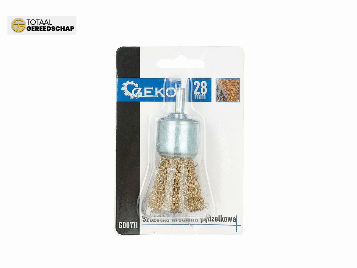 A wire brush cup with dimensions of 28 mm is a tool for cleaning and polishing metal surfaces. It is equipped with a dense, high-quality brass wire, which allows for high performance during cleaning and other works. The brush has an ergonomic shape and small dimensions, which facilitates access to hard-to-reach places. It is ideal for removing rust, paint, patina and other impurities from metal. You can use it with a drill or a screwdriver, which makes the work fast and easy.