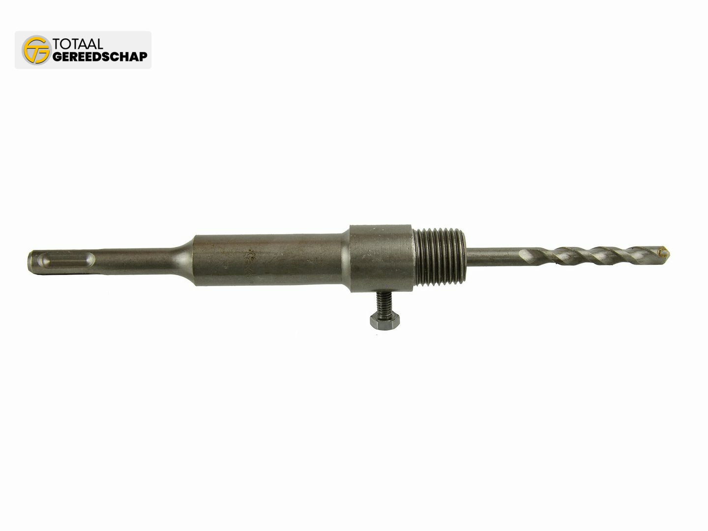 SDS Plus 160mm Adapter designed for hole saws / core drills to extend them by 160 mm in length. The extension is made of very durable chrome-vanadium steel (CrV) induction hardened. The adapter has a standard M22 thread, which makes it fit most hole saws available on the Polish market.