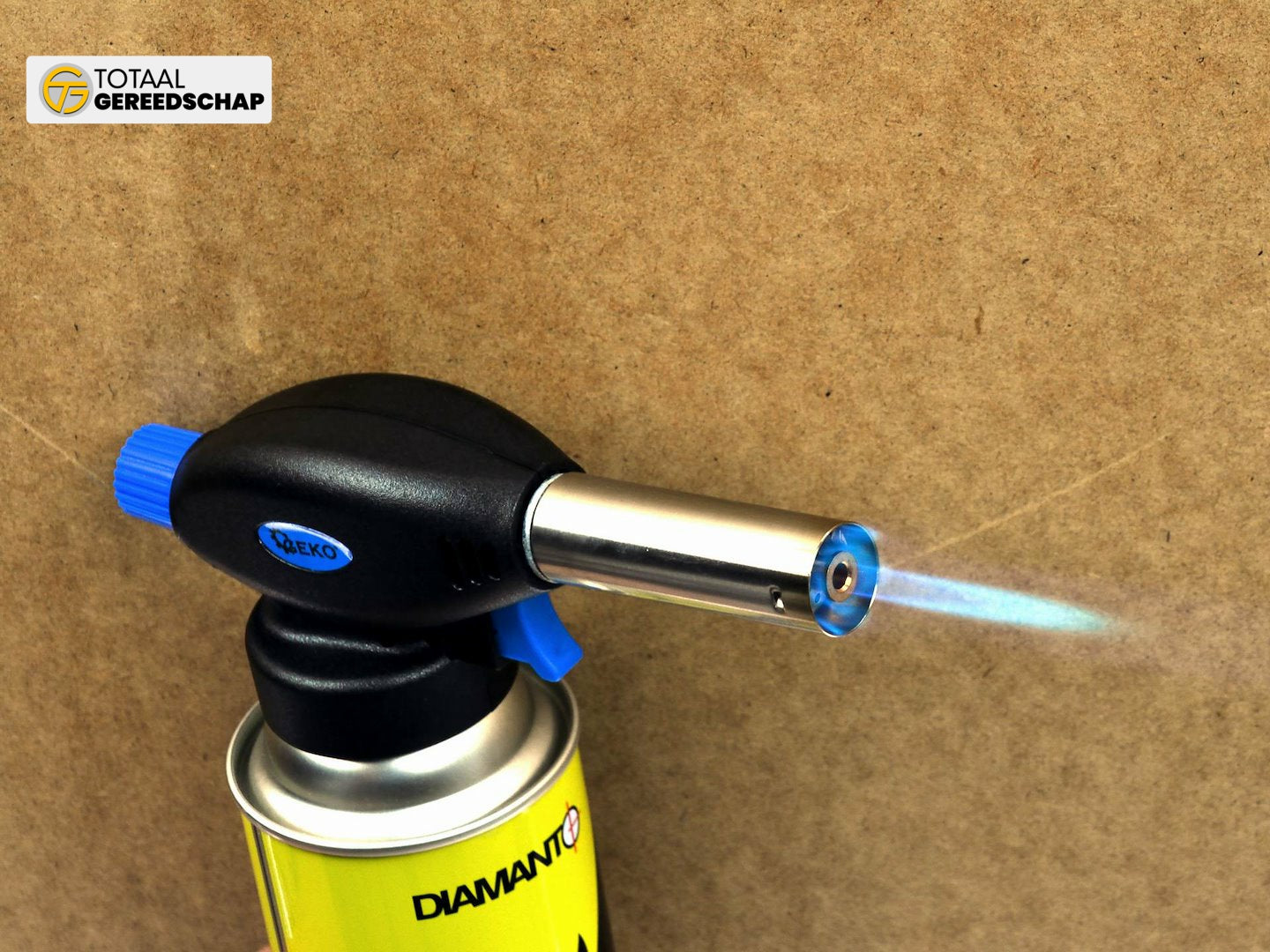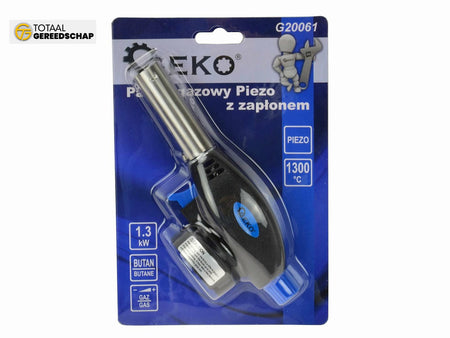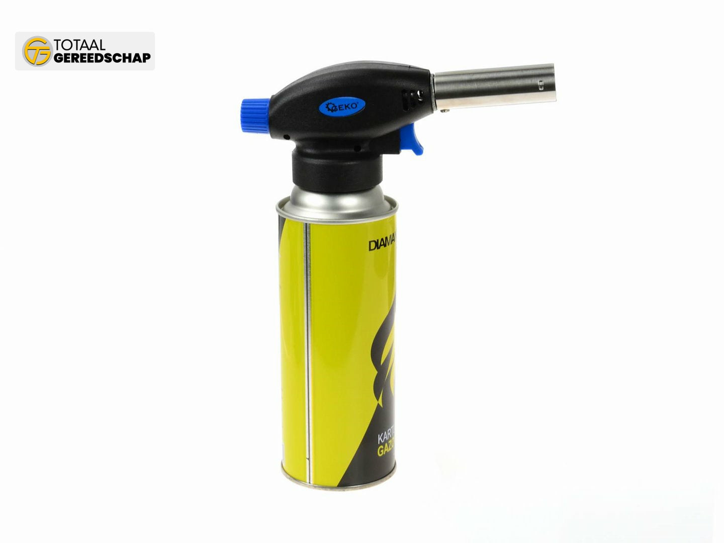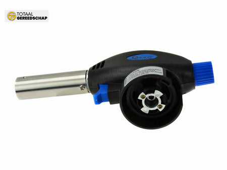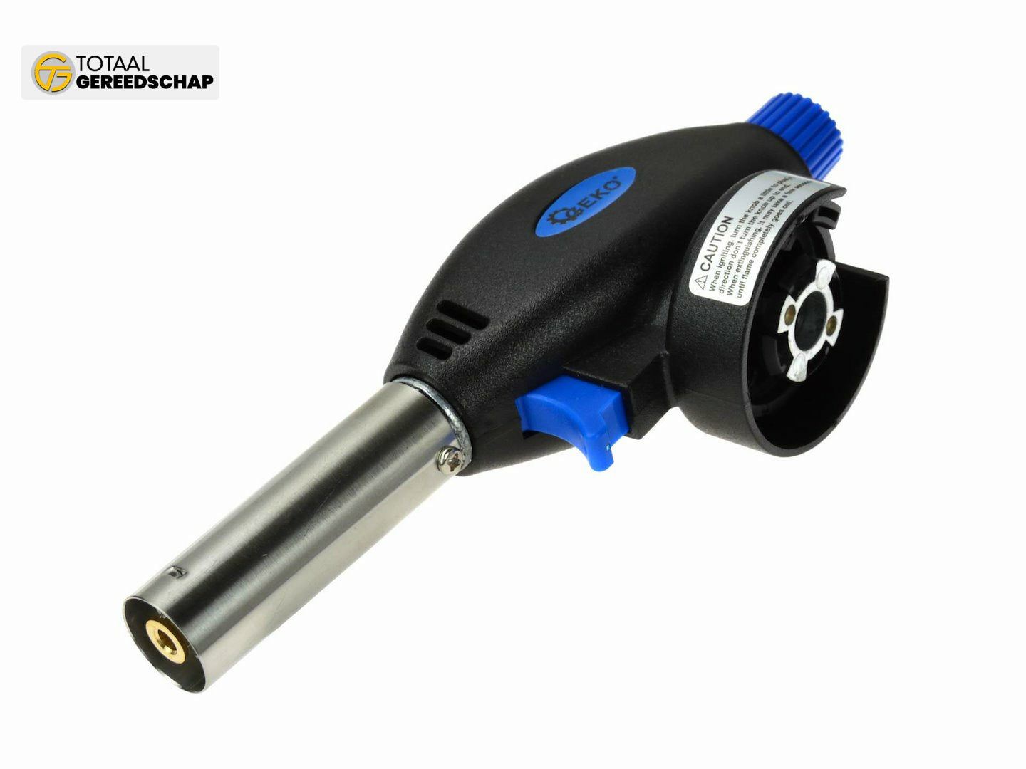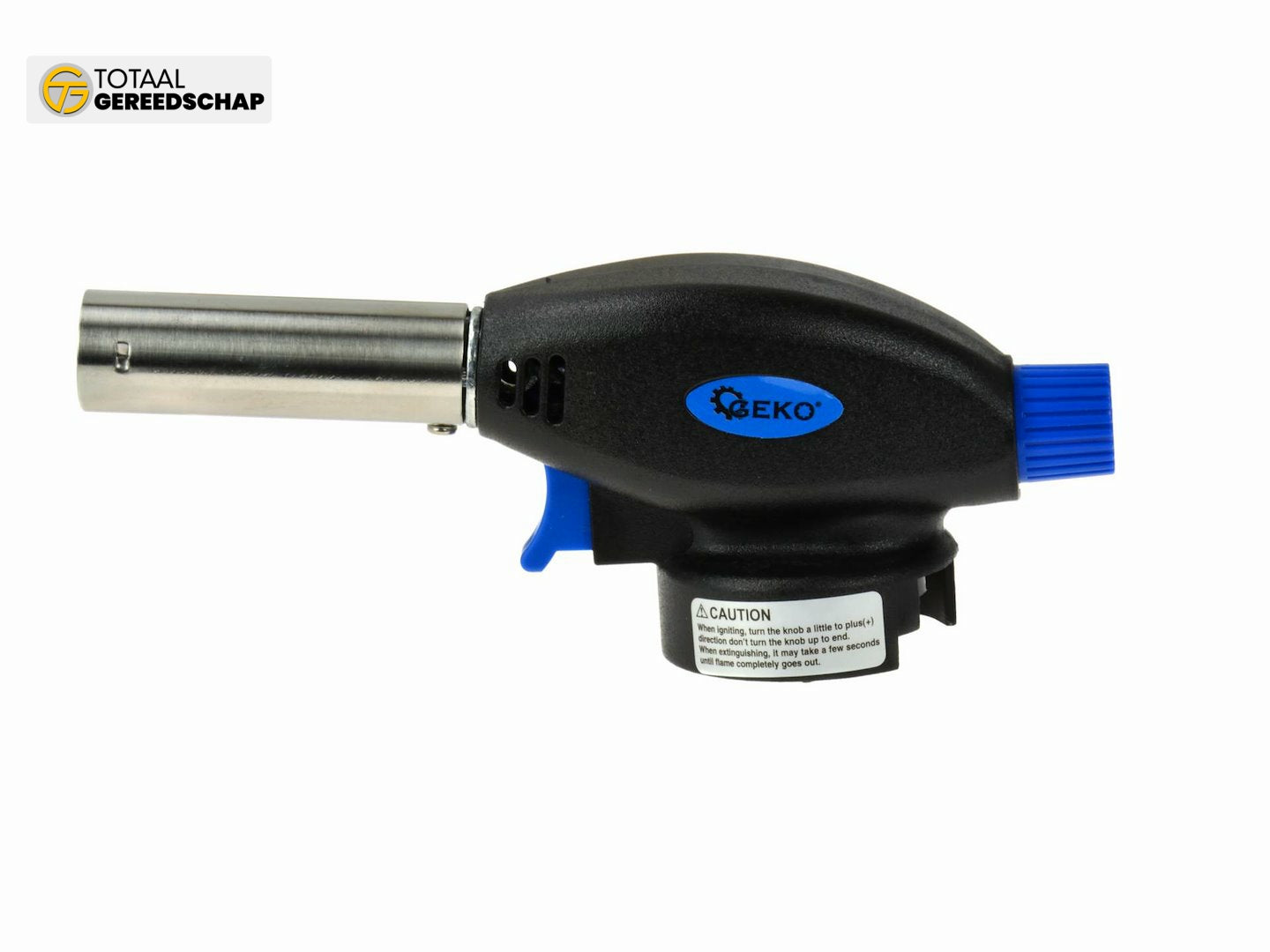 Universal auto-ignition flamethrower gas torch with one-touch automatic piezo ignition for convenient use. High-quality stainless steel & plastic body.