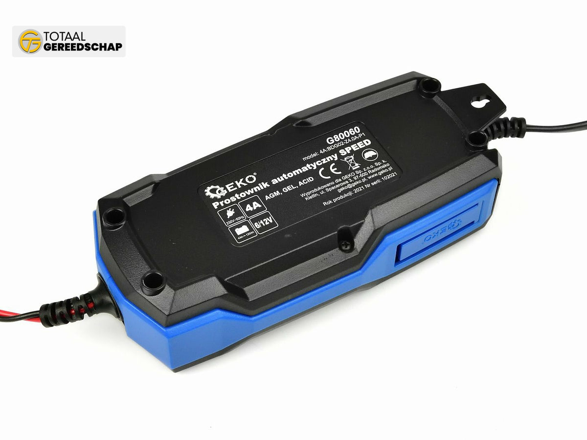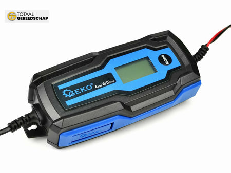 Automatic 4A Battery Charger. The device is designed for charging AGM, GEL, acid 6V/12V batteries and lithium iron (only 12V) with a capacity of from 4Ah to 120Ah. The device features a clear LCD display and built-in voltmeter. The charger is dedicated to batteries used in cars, motorcycles, mopeds, jet skis, and yachts.