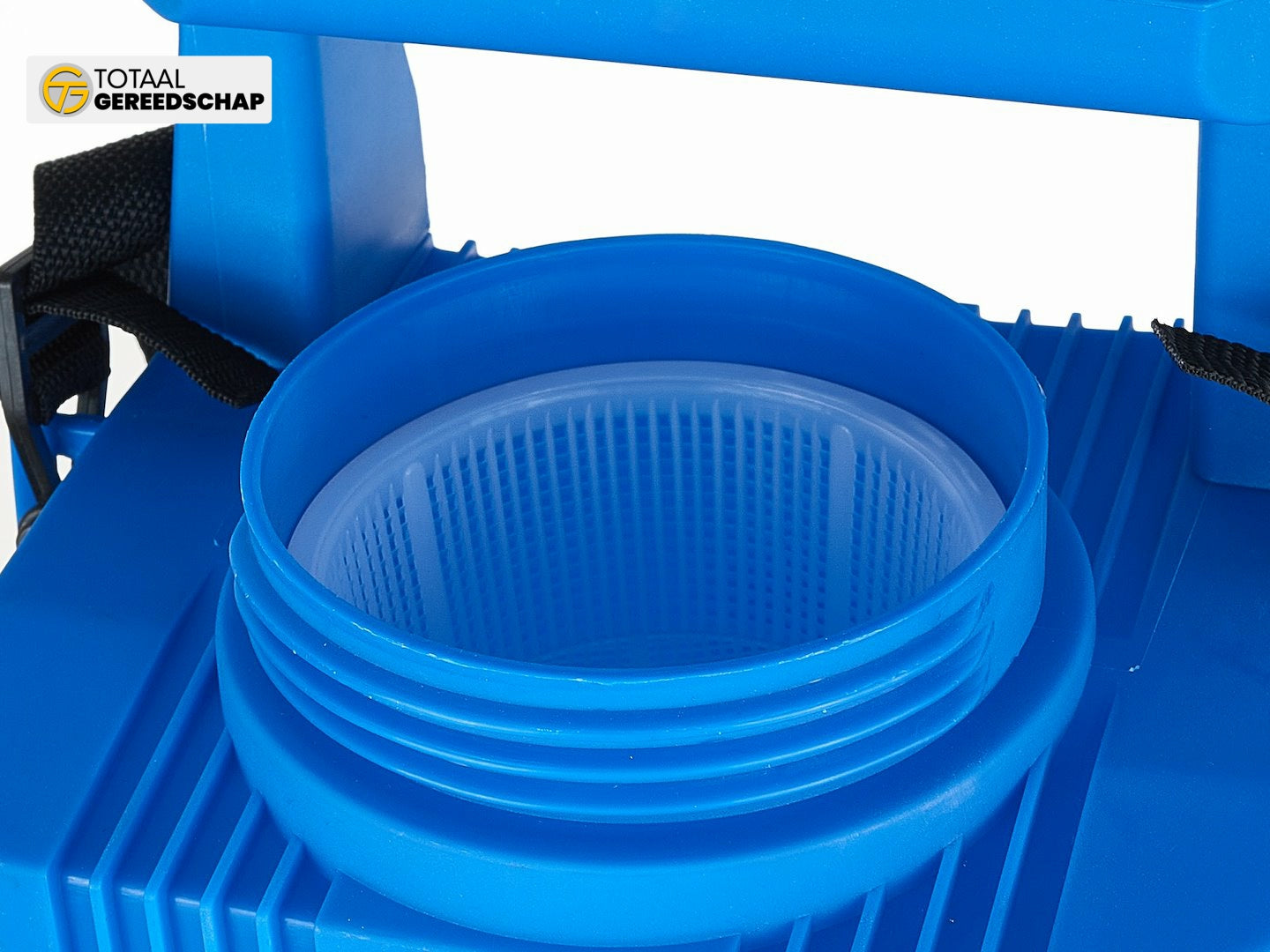 The fill opening features a practical mesh filter that prevents debris from clogging the nozzle. A wall charger is included, so the sprayer is ready to use right out of the box.