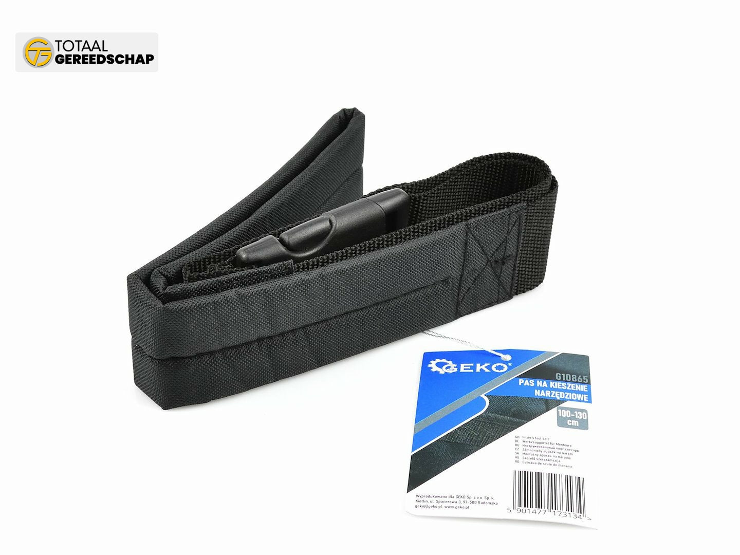 Tool belt made of durable abrasion-resistant plastic material. Equipped with a sturdy composite buckle, the belt is adjustable in the range of 100-130 cm.