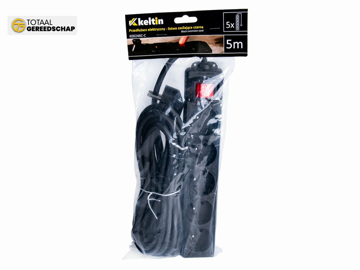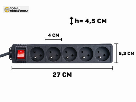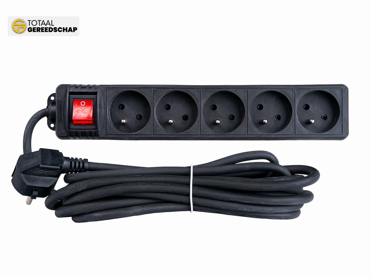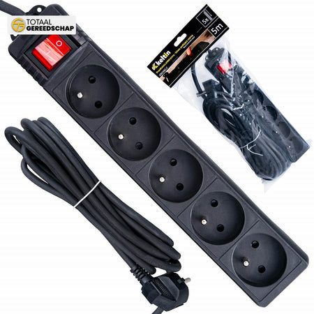 A functional 5-socket power extension cord with grounding and a switch, perfect for everyday use both at home and in the office.