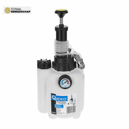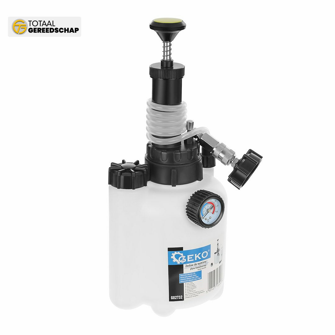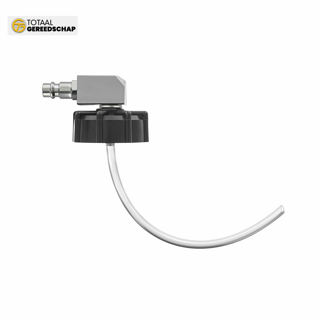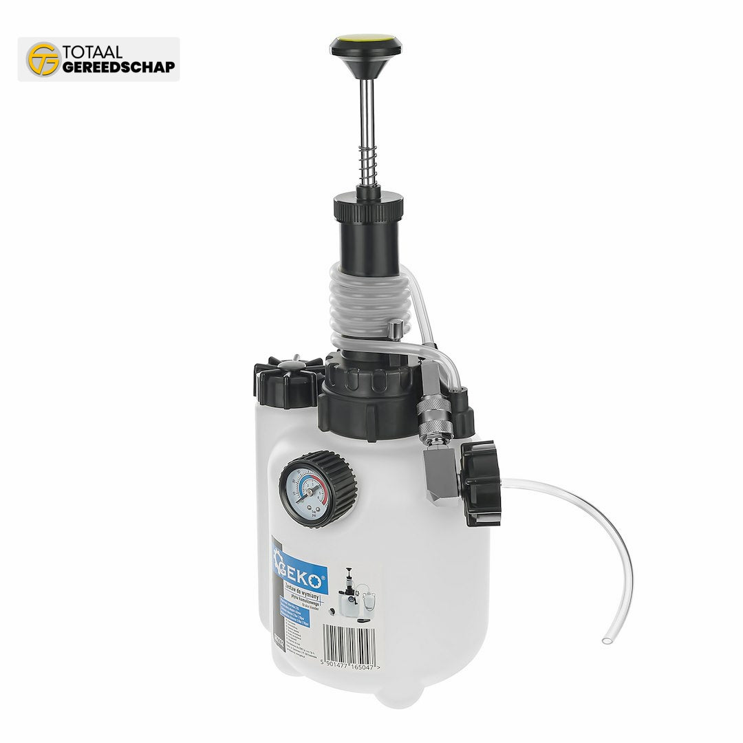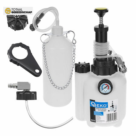 Designed for pressure-operated brake fluid replacement and bleeding of the entire braking system. Allows for quick and easy brake fluid replacement and bleeding by one person.