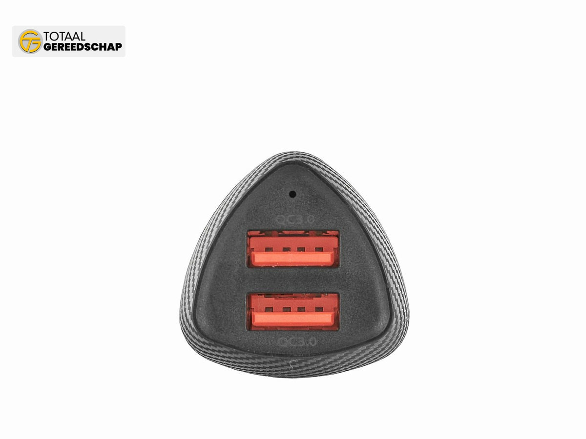 With QC3.0 technology and a maximum voltage of 7.2A, this charger supports quick charging, leading to a reduction in device charging time. The sleek black design adorned with a carbon element and the triangular shape of the charger not only adds a modern look but also facilitates device operation by conveniently inserting and removing the charger from the charging socket. High charging efficiency, the ability to charge two devices simultaneously, and its compact size make this charger an ideal companion for long trips, ensuring that your electronic devices are fully powered and ready to use.