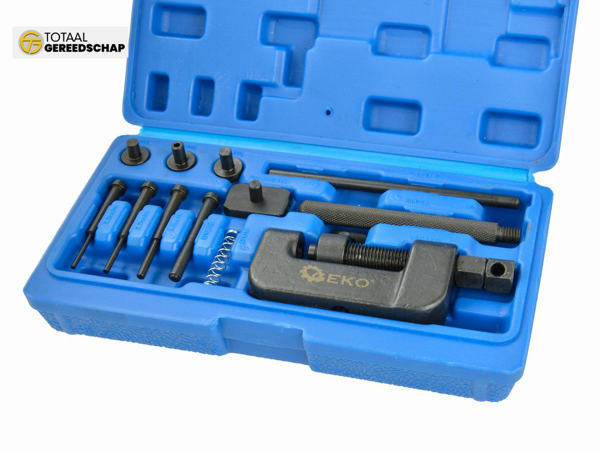 Chain breaker&riveting tool. Designed toábreaking and riveting chains and drive chains.áSuitable for motocycle. bicycle and car workshops.