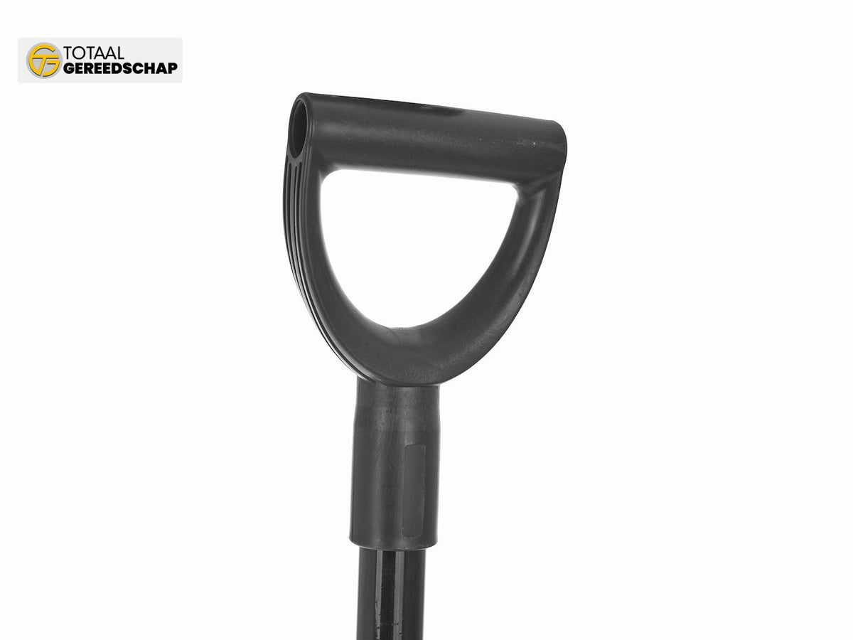 Steel curved handle coated with plastic, finished with a D-shaped grip made of durable plastic.