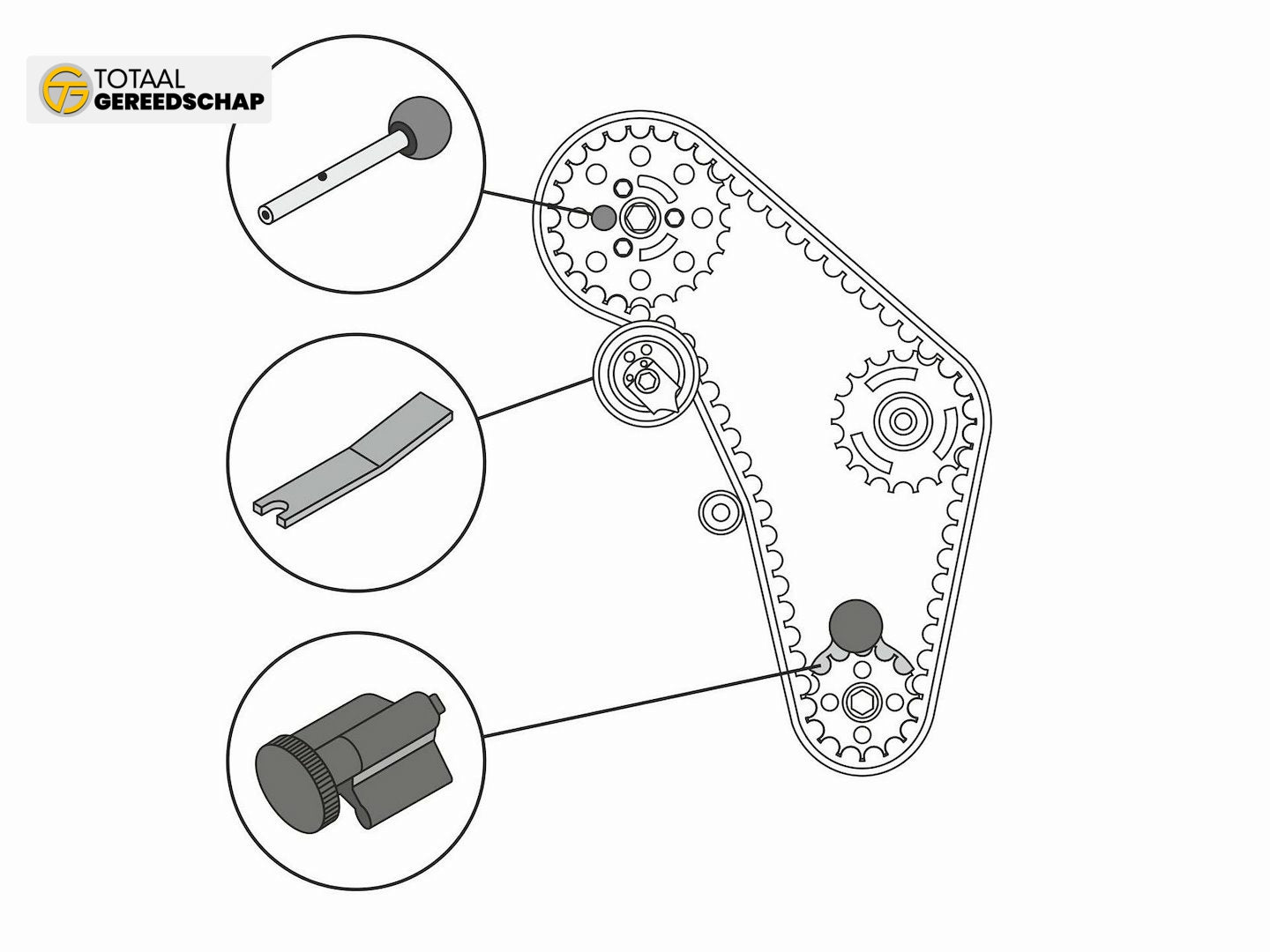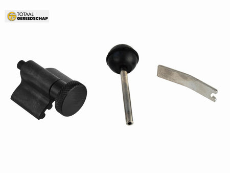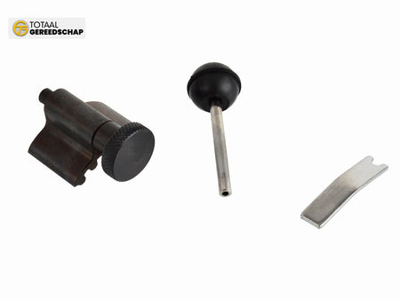 The set allows immobilization of gears in maintenance position while changing the timing belt. The special shape of blockages enables precise placement of ignition control points. The blockages immobilize the gear and crankshaft as well as the belt tensioner. Recommended for professionals.