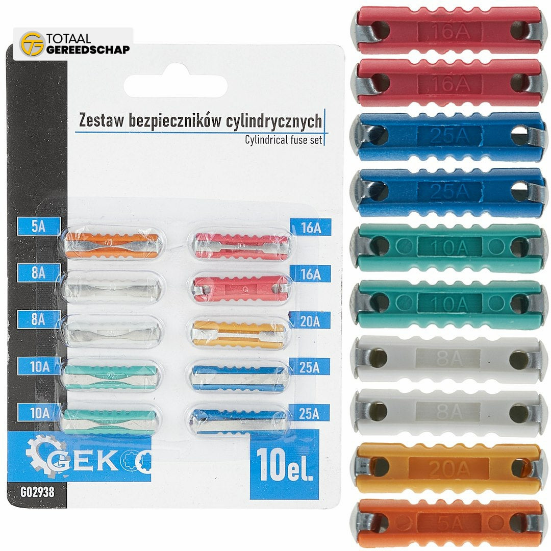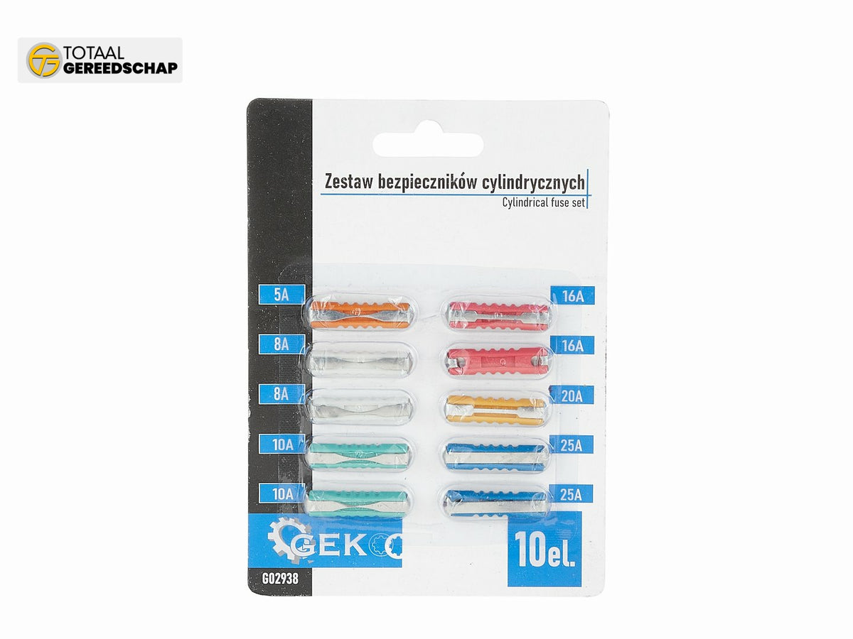A set of cylindrical fuses designed to protect electrical installations in vehicles and various devices. These fuses provide effective protection against surges and short circuits, safeguarding delicate electrical components from damage. An ideal solution for both automotive applications and electrical systems with a wide range of current intensities.