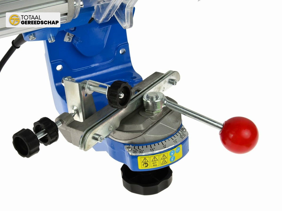 The device provides quick and precise sharpening. Vise with angle adjustment up to 35° left or right. Suitable for all types of popular chainsaw chains.