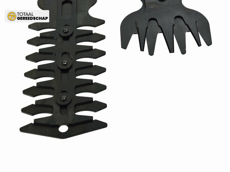 The set includes wide blade for cutting 83mm wide grassáand blade for cutting 120 mm long shears. The blade is changed with no use of tools, what enbles to change the blades for grass into the blades for shears. Usage of two blades enable to form the lawn and small shears very precisely.