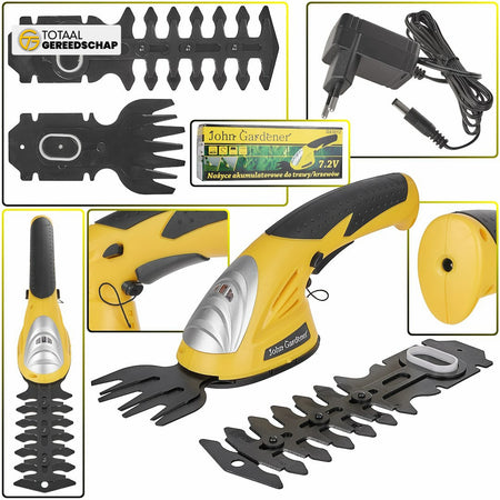 Cordless grass/shrub shears are irreplaceable device during garden maintenance. áFinishing the grass edges has never been easier. Because of usage of lithium-ionábatteryáwithá1300mAh capacity the shears become very handy and the cable does not bother the user. The ergonimic handle is covered by a anti-slip material and because of low weight makes the performance comfortable and safe.á