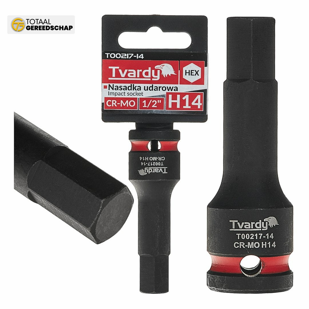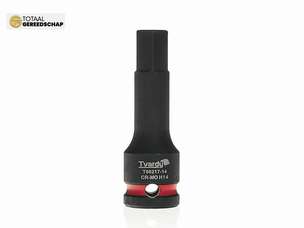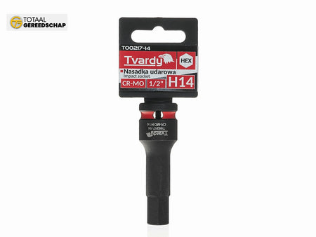 A professional HEX impact socket by Tvardy, designed for heavy-duty use with impact wrenches. Indispensable in automotive workshops, industrial settings, and during assembly of structures using HEX socket connections.
