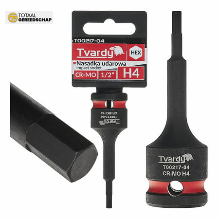 A professional HEX impact socket by Tvardy, designed for heavy-duty use with impact wrenches. Indispensable in automotive workshops, industrial settings, and during assembly of structures using HEX socket connections.