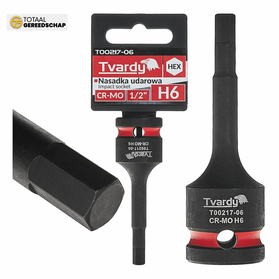 A professional HEX impact socket by Tvardy, designed for heavy-duty use with impact wrenches. Indispensable in automotive workshops, industrial settings, and during assembly of structures using HEX socket connections.