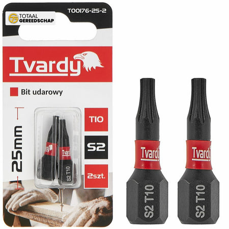 Tvardy T10 25mm S2 is a professional impact bit designed for users who value durability and precision in their work. Made from high-quality S2 steel, it offers exceptional wear resistance and long service life, even under intensive use.