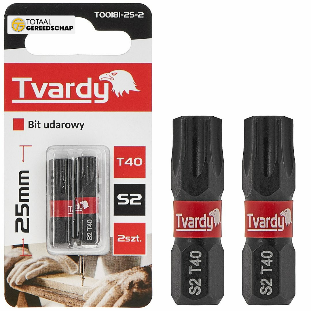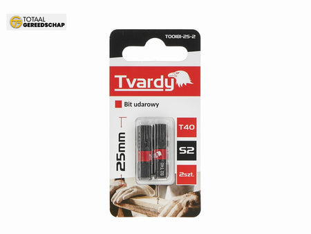 Tvardy T40 25mm S2 is a professional impact bit designed for users who value durability and precision in their work. Made from high-quality S2 steel, it offers exceptional wear resistance and long service life, even under intensive use.