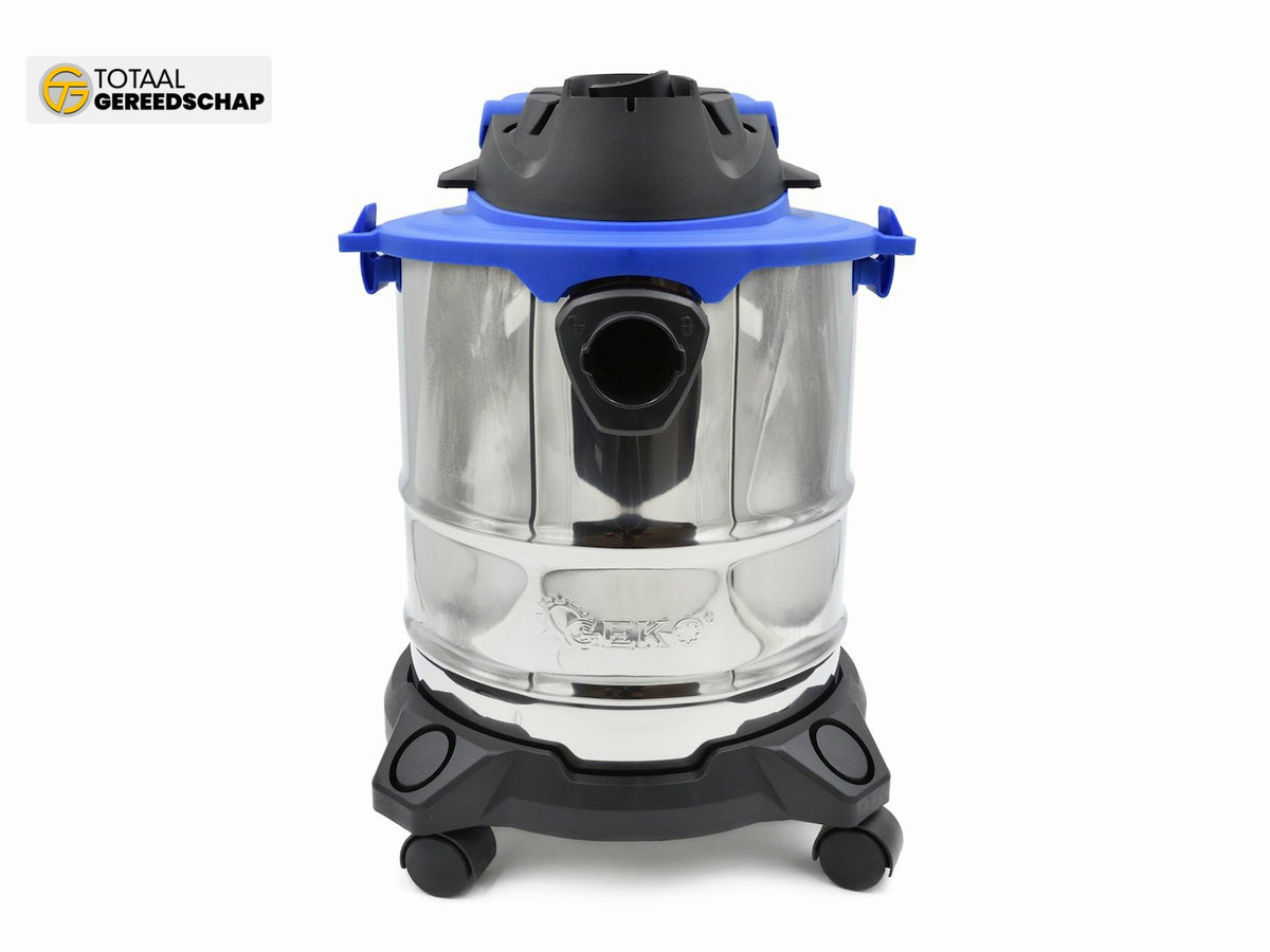 GEKO 20-litre Industrial Dry&Wet Vacuum Cleaner is used to suck liquids, dry materials, and damp materials. This electric vacuum unit for wet or dry is equipped with a ?35 mm suction hose, three plastic suction pipes, a combination nozzle for large and medium areas, and a crevice nozzle for cleaning crevices and edges.