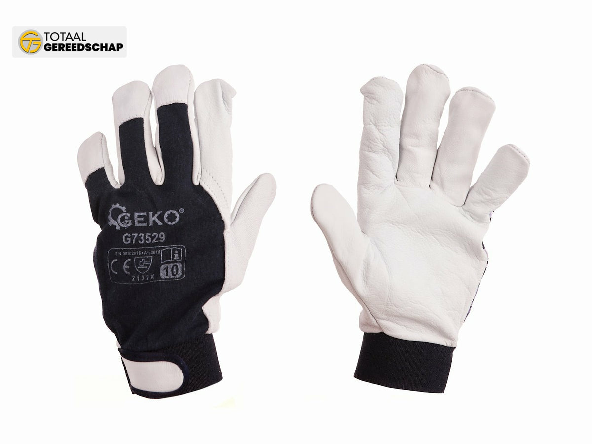 GEKO Leather Work Gloves EN388 2132X are a robust choice for those seeking durable hand protection for a wide range of tasks. Their compliance with the EN388 standard, convenient Velcro closure, and leather-cotton blend make them indispensable for daily work.