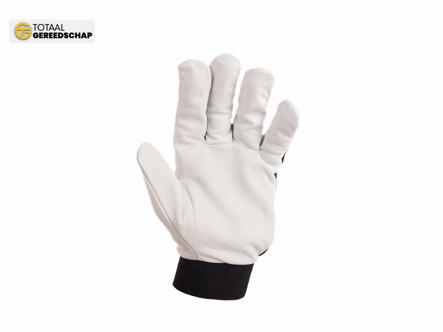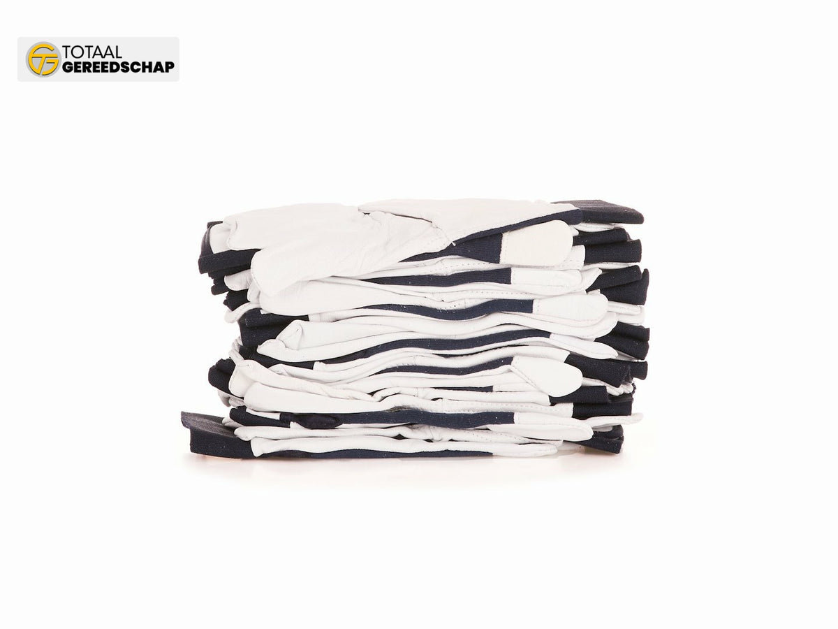 These gloves are crafted from a combination of durable leather and comfortable cotton, offering an excellent fit and long-lasting wear. They also feature a Velcro strap for easy and secure fastening, ensuring the gloves stay in place during work.