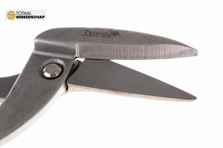 Tvardy 300 mm Left-Curved Pelican-Type Sheet Metal Snips are versatile tools ideal for precise cutting of sheet metal in various shapes. With a robust construction and ergonomic design, these snips ensure comfort and efficiency with minimal effort.