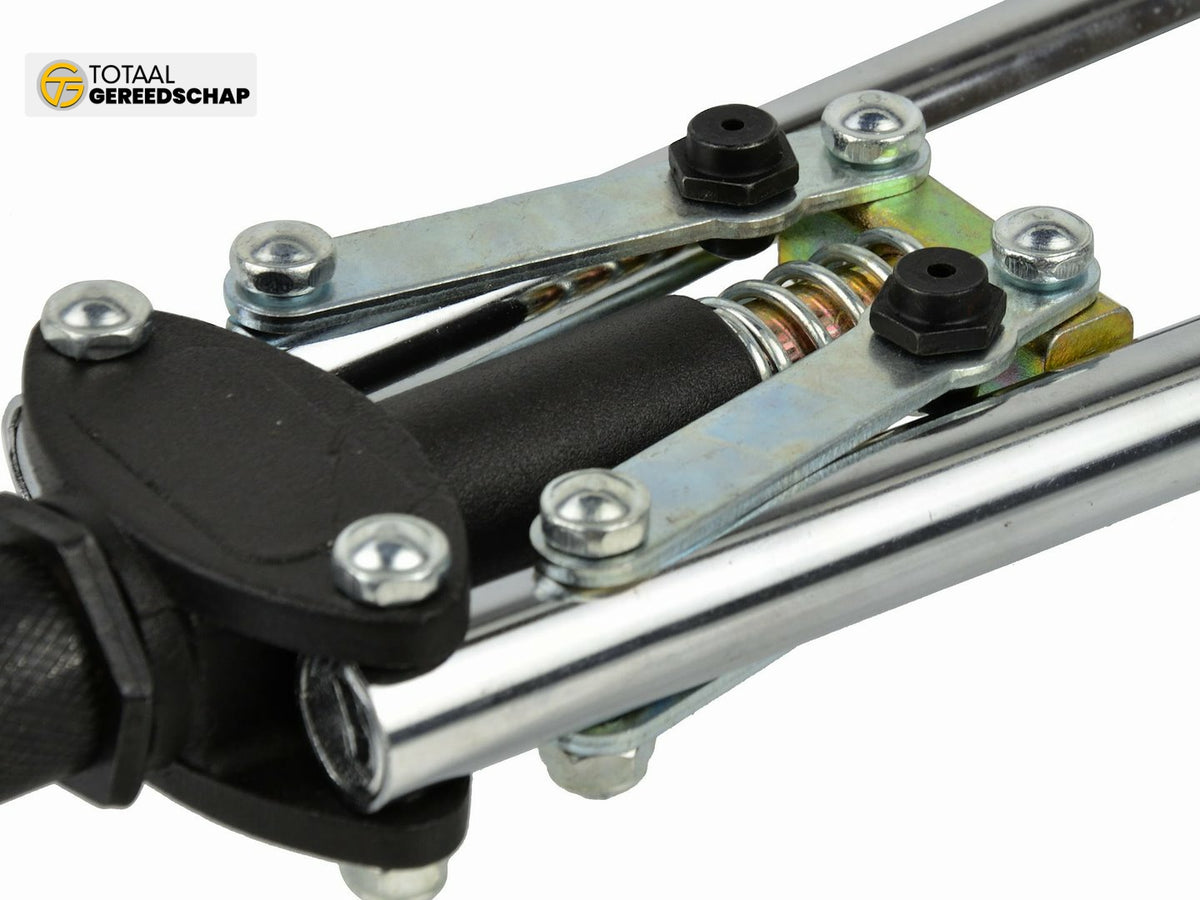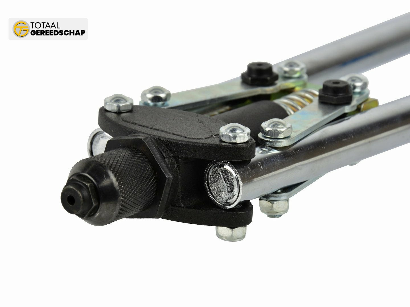 Lever Type Hand Riveter which can use 4 different size of rivets. Fastens sheet metal and heavy fabric in ductwork, construction, and auto body repair applications.