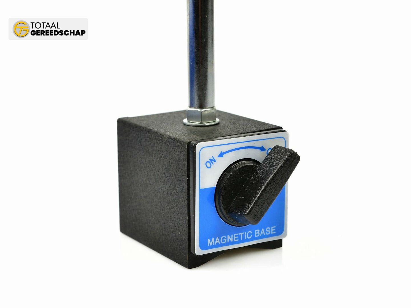 The magnetic stand has an ON/OFF switch to activate the magnet at the base.