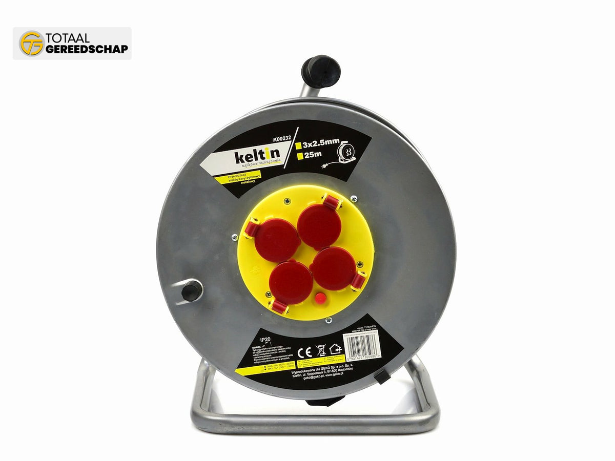 Drum electric extension cord perfectly suited for every home, garden, workshop, and construction site. Equipped with a thermal fuse that protects against overheating.