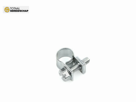 Mini GBS clamp bands made of galvanized steel W1 with a hinged closure designed for making connections on hoses and pipes of small diameter exposed to heavy loads. The bands are made of steel tape and feature curved edges, which prevent hose damage even when clamped tightly. Mini GBS clamp bands are used for heavy-load connections, hoses with ribbed external surfaces, hoses with thick and strong walls, and suction hoses with internal metal or plastic spirals.