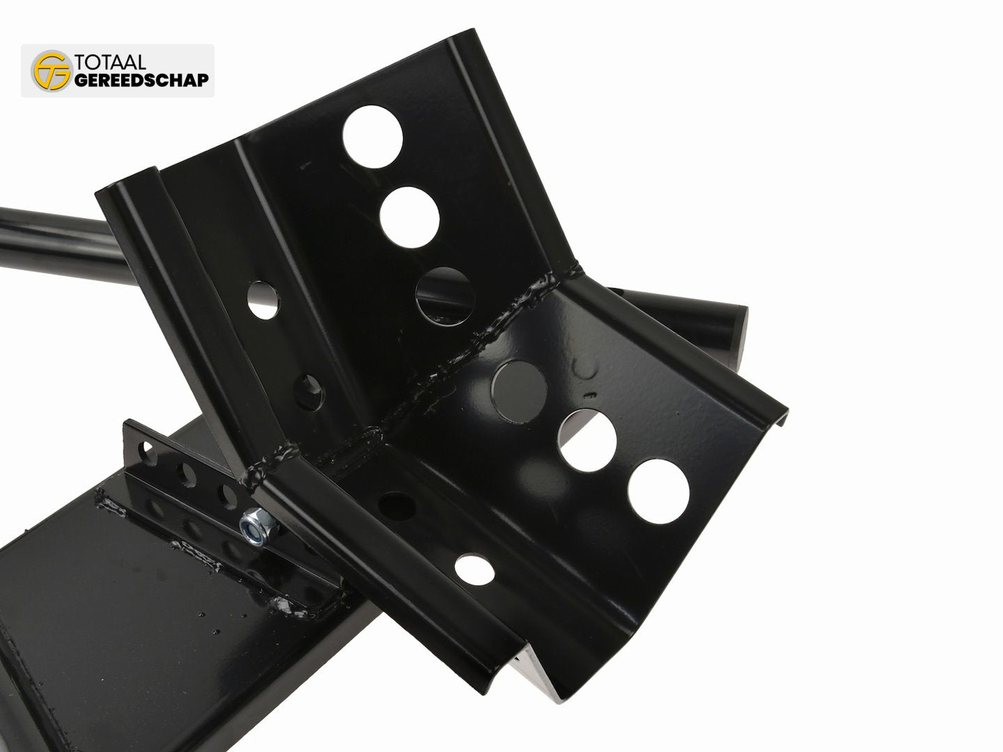 Adapted for mounting to the floor of a trailer, van, platform, or garage floor, etc. Intended for motorcycles with wheel sizes of 14-22".