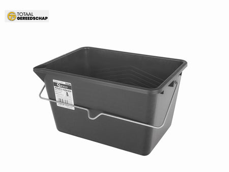 Durable paint bucket with a capacity of 8 liters, made of sturdy PP plastic material. It will work excellently for all types of painting, renovation, and gardening tasks. On one of the inner walls, there are grooves that allow you to get rid of excess paint from the roller.
